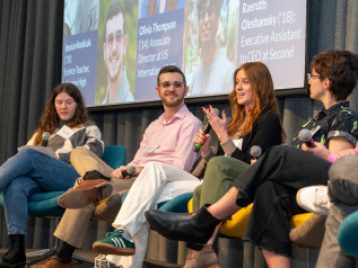 Our students were thrilled to connect with and learn from our alumni. They asked generative questions and formed connections with our panelists. Aayana Anand, a current BLI Applied Leadership Fellow, shared that “hearing from alums about their career journeys and the ways that their experiences in the BLI shaped those journeys was invaluable. As a current BLI staff member, attending the panel helped me reflect on my own experiences in the BLI and think about how it could shape my career post-grad. Furthermore, every alum was visibly excited to speak to us, making the overall event that much more comfortable for everyone.”