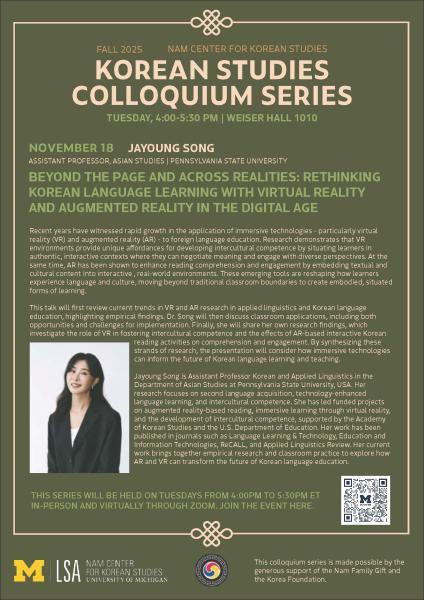 Nam Center Colloquium Series | Beyond the Page and Across Realities: Rethinking Korean Language Learning with virtual reality and augmented reality in the Digital Age