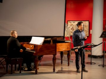 In an hour program, Dr. Matthew Thompson, Assistant Professor of Voice at the University of Michigan School of Music, Theatre & Dance wove a narrative among eleven performances, sometimes providing historic information about the works, and at other times personal, describing his connection to this repertoire. A pianist, Thompson was joined by current students Hayoung Jung, Minji Kim, and Jack Morin, as well as alumni, Yongmin Kim and celebrated opera star Vince Yi in the evening’s performance. Thompson explained that after decades of teaching song in German, French, Italian, English, and other languages, he began to question what the barrier for Korean song was.