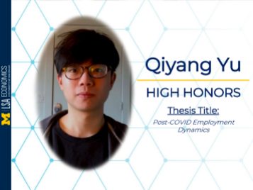 "We don't need a live ceremony to understand this moment, right now, and this Michigan community—forever—are always for you!” -David Miller, Associate Professor of Economics & Director of Undergraduate Studies