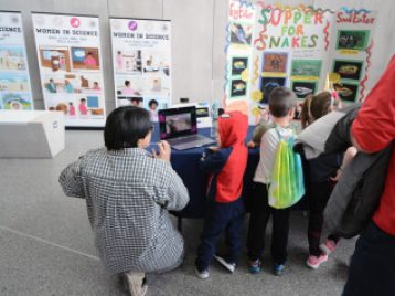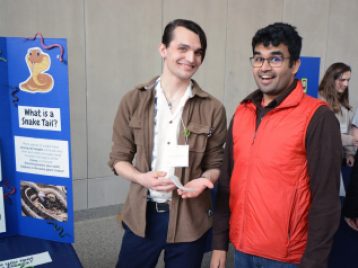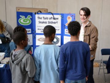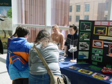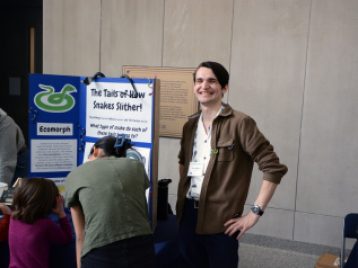 The collection of 12 different exhibits specifically featured the research of students who took EEB 450, who used 3D printers to help show the differences in snake tails for swimming versus climbing, illustrating how lizards can lose their tails when chased by a predator, and much more. Students used CT (computed tomography) scans of reptiles and amphibians created from real museum specimens. These scans help to communicate the importance of morphology in biodiversity science.