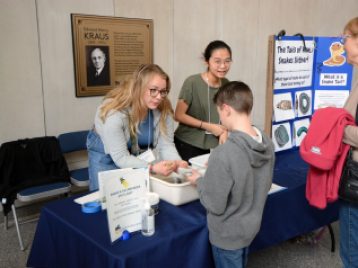 The Snake & Salamander event, led by Alison Davis Rabosky, assistant professor of ecology and evolutionary biology, welcomed visitors to the Biological Sciences building on March 28, 2023. Students from all over the Ann Arbor and Ypsilanti area came together during this spring break event to learn in a hands-on way. EEB 450 students engaged an all-ages crowd with hands-on explorations of amphibians and reptiles. This Biodiversity exhibit helped visitors understand the many unique features of reptiles and amphibians, from the iconic snakes and salamanders to the enigmatic caecilians, the limbless group of amphibians known as the “sharks of the soil.”
