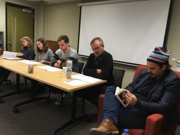 The reading at our department was staged together with faculty and students from the Theatre & Drama Department at University of Michigan. Malcolm Tulip (Prof. of Theatre), Kris Danford (Prof. of Voice and Speech), Sarah Prendergast (senior Acting), and Liam Loomer (senior Acting) read from the English translation of the play.