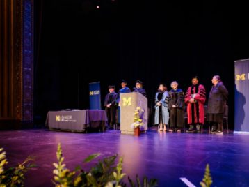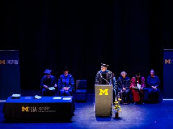 Brian Porter-Szűcs, director of undergraduate studies, and Kate Wroblewski, assistant director of undergraduate studies, served as emcees. William Glover, the department chair, delivered welcome remarks, and Jane Heckendorn gave an inspiring student address to the Class of 2025. Earl Lewis, the Thomas C. Holt Distinguished University Professor of History, Afroamerican and African Studies, and Public Policy, and founding director of the U-M Center for Social Solutions, presented the ceremony's keynote address, "The Grace of History."