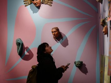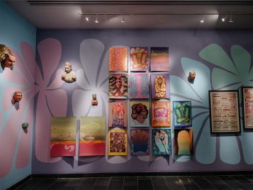 With Care visually articulates the complex and exquisite nature of the human relationships that bind us through patterns, colors, images and forms. Marroquin’s vision for this installation is abounding, riotous, uproarious, and unapologetic. The artist inhabits the gallery space with the exuberance and volition of an unstoppable comet.