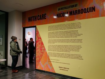 Her site-specific installation With Care, created for the Institute for the Humanities Gallery, presents the documentary photographs of influential Mexican-born artist, teacher, and friend Diana Solís in visual dialogue with Marroquin’s own creative work which includes ceramic sculptures and printmaking. Solís’s photography reflects over 25 years of transnational Chicana and lesbian organizing primarily in Chicago and Mexico City between 1975 and 1990.