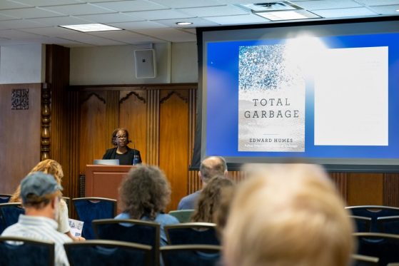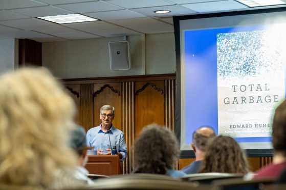 On September 25, 2025 Pulitzer Prize-winning journalist and author Ed Humes spoke at the Michigan League about his newest book, Total Garbage: How We Can Fix Our Waste and Heal Our World. Speaking to a full audience in the Michigan Room, Humes explored how our waste problem ties into bigger questions about ethics, community, and how we relate to one another and the environment.
