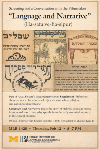 This episode is part of the Anat Zeltzer’s documentary series Secularism (Hiloniyut) about secular culture in Israel, a Jewish state where religion and nationhood intertwine. “Language and Narrative” traces the story of Hebrew language revival—from sacred text to everyday speech, from the early twentieth century to the current moment.