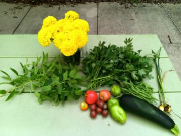 My souvenirs from the East Quad garden included a bell pepper, chives (which I needed but was too lazy to purchase), rosemary, and some tomatoes. I almost wish I could selfishly keep the garden a secret, but you’ll know where to find me now each fall semester.