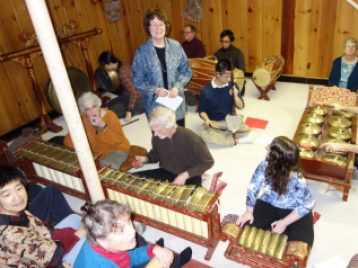 Teaching at the UM has been one of the best experiences of my life. I feel particularly grateful that I found the Residential College (through Beth Genné’s help), because of its ethos of camaraderie; the harmonious relations among faculty, students and staff; its innovative spirit; and the enormous autonomy and independence afforded to faculty members. How wonderful it was to create courses that I wanted to teach rather than being told to teach the same survey over and over. I felt lucky that I could teach in the Arts and Ideas in the Humanities Concentration, for it combined my passions for music, literature and cultural studies. I particularly enjoyed teaching Arts and Ideas of Modern South and Southeast Asia. A second favorite was The Performing Arts of South and Southeast Asia, where I had the pleasure of delving into theories of oral transmission in cultures with limited access to literacy. Because of those two courses, I conducted research in Kerala, India. I also enjoyed teaching Cultural Confrontations in the Arts, which focused on how artists, musicians, filmmakers and writers in the three main ethnic groups in the US view their position in the racial hierarchy. For each segment of the class, I invited an artist of that ethnic group to present his/her art. Listening to mixed media artists Marianetta Porter and Sadashi Inuzuka explain their lives and their work was a great privilege. For several years I taught Studying and Playing Southeast Asian Music, half of it a survey of Indonesian music, and half of it playing gamelan, all in my basement.