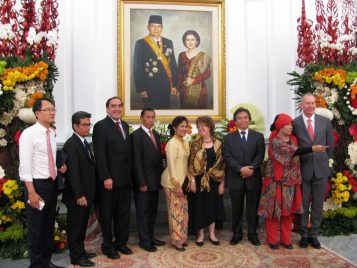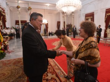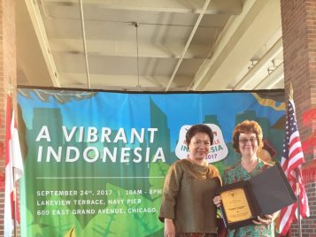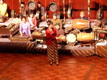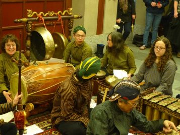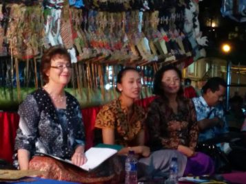 Teaching gamelan and running the gamelan program afforded me so many opportunities. I discovered with surprise and delight how some students benefit from experiential learning in ways that they didn’t when reading and writing. I performed as a pesindhen (solo female gamelan singer) with many gamelan groups in Java and the US. I so enjoyed bringing Javanese performing artists to teach and perform at UM, people I had met on my research trips to Java. For some of our concerts, we had a hundred UM students on the Hill stage performing as gamelan musicians, dancers, puppeteers, narrators and singers. Recently the Indonesian government has taken notice of the UM gamelan’s activities (which started decades before I started at the RC). It awarded the UM Gamelan a “cultural award certificate.” I attended the award ceremony in Chicago and was told that as a result of the level of activity at UM, the Indonesian government will provide musicians and dancers to us in the future, paid for by the Indonesian government. The government also invited me to represent the US in the 2014 celebration of Indonesian Independence; I spent a week with ten other Indonesian aficionados from across the world, meeting Indonesian governmental officials, including President Yudhoyono.