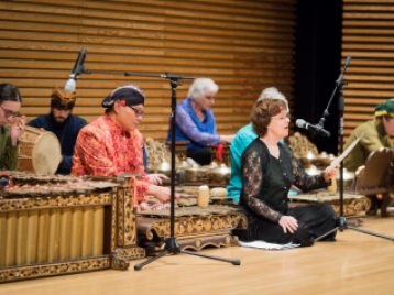 We celebrate the career of retiring faculty member, Susan Walton. As you can see in the photos below, Susan has had a distinguished international career as an expert in the music and performance styles of Southeast Asia. We are fortunate that she directed the gamelan program at the University of Michigan for 17 years, and many of us have benefited from the opportunity to experience one of the gamelan concerts that she sponsored on campus. She is a cherished teacher of hundreds of students in the RC on the music, theatre, and ethnic identity of cultures in South and Southeast Asia. She has invited gamelan artists from Indonesia to the UM campus on several occasions and is model of cross-cultural exchange and collaboration. Please enjoy the photos, note, and bio that she has provided us. Congratulations, Susan, and best wishes for your next adventures!