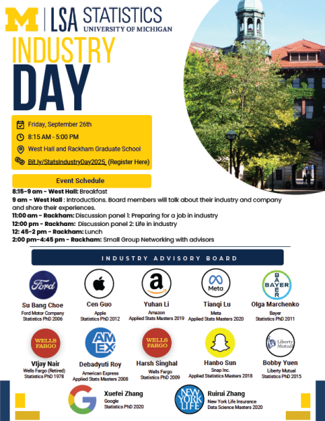 The Department of Statistics is inviting all statistics and data science graduate students to Industry Day!