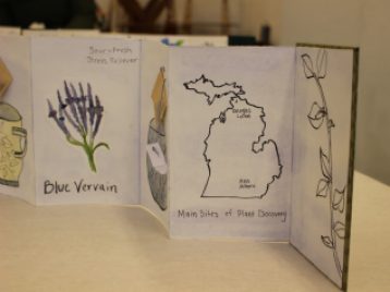 Instructor Cathy Barry invited UMBS staff to attend ARTDES 300’s final meeting of the semester last Friday. Students showed off their final florilegia, full of uniquely rendered samples from Northern Michigan and Ann Arbor.