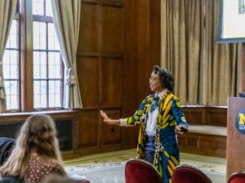 Last semester, I was no stranger to the interplay between mindfulness, meditation, and social justice. After all, through Dr. Ram Mahalingam’s interdisciplinary university course on these subjects (PSYCH 390, in case you’re interested), I learned about how mindfulness can be harnessed to transform people and communities within our spheres of influence, not just ourselves. However, even with all of this background knowledge under my belt, I was floored by Rhonda Magee’s fascinating ideas about the subject, especially concerning how embodied mindfulness—a phrase I’d never encountered before—is a vital tool in this nation’s mission to remove deeply entrenched bigotry and discrimination from our systems and collective attitudes. A few weeks ago, right as the semester was wrapping up, I seized the opportunity to attend both Rhonda’s talk and her workshop. Both events gifted me with incredible perspectives not only on the restorative powers of mindfulness but also on how large of an impact each individual person can have by taking advantage of the specific practices she outlined. In this reflection, I’ll touch on a few practices that resonated with me the most, along with my key takeaways from both events.
