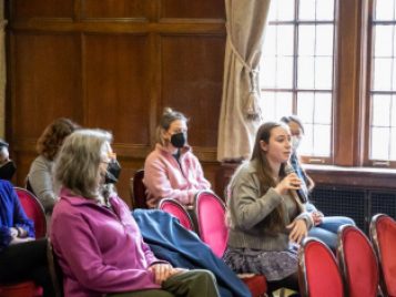 First and foremost, one thing I appreciated about the talk was that before delving into the actual meat of the subject, we (the audience members) were given the opportunity to ground ourselves in the present. We closed our eyes, planted our feet on the ground, and listened to Rhonda’s gentle voice, which encouraged us to direct loving-kindness towards both ourselves and others. We were also encouraged to think of good memories, loved ones, and any thoughts that made us feel safe. The exercise took no more than twenty minutes, but after its conclusion, there was a noticeable shift in the room—people seemed more alert, attentive, relaxed, and open, both in body language and commentary. Right off the bat, Rhonda demonstrated to us that any discussions are most productive when their participants have made an effort to fully embed themselves in the present first.