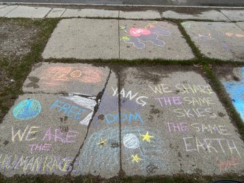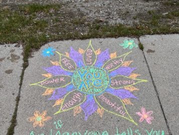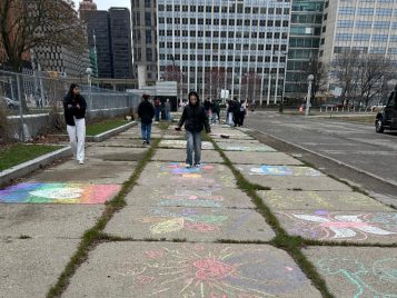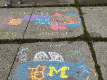 We then took to Hart Plaza with sidewalk chalk, which prompted participants to think about how our art might spark curiosity and warmth in each passerby. Giving us an experience of making public art felt profoundly bridged to the idea that we are creating something that transcends our immediate space, leaving our personal impact beyond our retreat.