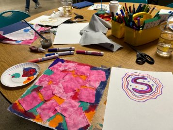 The next day we had the pleasure of learning about the 10 BLI Habits from BLI director Ram Mahalingham. He taught us the importance of building upon these habits a little every day until they become a cohesive part of our lives. In each activity we did, I learned more about myself and how I could practically implement mindfulness in ways that were personal to me. I could engage in personalized lessons from all of the BLI staff, while also learning mindfulness practically and in hands-on ways. Since we had a small cohort, everyone was able to share their experiences and ideas. I learned how others implemented BLI habits into their lives, and learned how each person viewed mindfulness differently. We were able to journal and reflect on each activity and create artwork that was both personal and fun. We made flags with goals from the retreat, colored, and did a paint-and-pour activity. All these activities allowed us to learn while bonding as a cohort.
