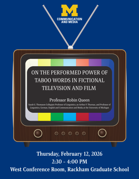 In this talk, I focus on the fluidity between the regulation and the occurrence of taboo language within the fictional audiovisual media in the United States and show that tabooed lexical items in the fictional media are simultaneously performative and performed. Tabooed words present a fascinating source of cross-cultural and cross-linguistic puzzles, puzzles that can be mediated through the indexicality of performativity (as action) and performance (as highly stylized representation). First, I illustrate a range of functions fulfilled by taboo terms in the fictional media, including their various grammatical functions and their place within the narrative. Second, I show how the regulation of taboo usage highlights an iterative, dialectic tension between performance and performativity. This tension is uniquely visible in the fictional media because, on the one hand, regulation occurs within the fictional material itself (e.g. a character performs the admonition of another character with “that’s a bad word”) and, on the other, regulation occurs through external institutions (such as, in the United States, the Federal Communication Commission or the Motion Picture Association of America). By drawing on the performativity of taboo utterances to reframe regulation away from preventing offence (due to breaking a taboo) to the ideological protection of children, regulatory bodies must engage the dialectic between performance and performativity and thereby index competing cultural norms and ideologies, mechanisms of prohibition, commercial interests, freedom of expression, artistic/poetic expression, and entertainment.