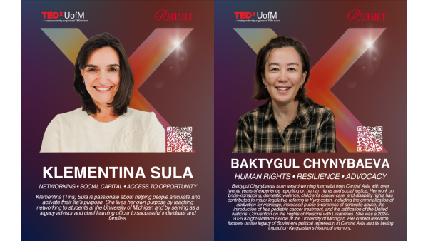 Both speakers will present at TEDxUofM on Saturday, March 14, from 3–6 pm, at the Power Center for Performing Arts. See the full line-up of speakers and purchase tickets at tedxuofm.com.