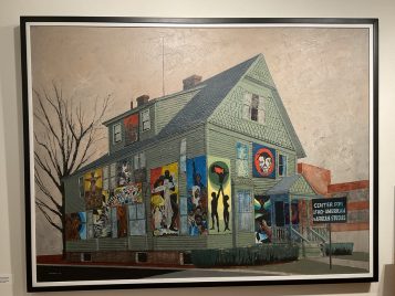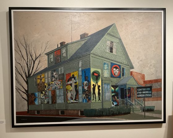 “DAAS@55” features a painting of the original Center for Afroamerican and African Studies (CAAS) location. Painted by Milton Kemnitz, the house, with its exterior adorned with colorful murals by the late DAAS Professor Jon Onye Lockard and his students, is eye-catching and prompts reflection on the long history of resilience and radiance that CAAS embodies; despite the original CAAS building being destroyed by fire, CAAS has never faltered but instead adapted and evolved, with the painting of the building serving as a lasting symbol of that resilience.