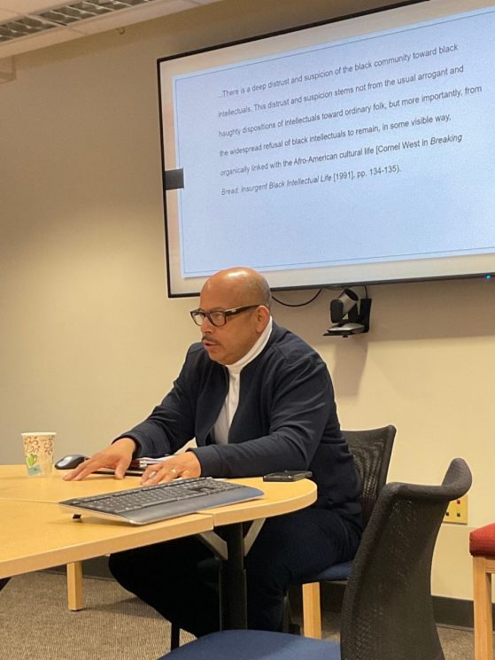 Another DAAS faculty member featured in the exhibit is Associate Professor Stephen Ward, whose books are displayed on a bookshelf of faculty publications. Ward is the author of In Love and Struggle: The Revolutionary Lives of James and Grace Lee Boggs (2016) and the editor of Pages From a Black Radical's Notebook: A James Boggs Reader (2011). On September 17, Ward served as the inaugural speaker for DAAS’ Faculty Forum, a celebratory series of monthly talks by DAAS faculty in honor of the department’s 55th anniversary year. The DAAS conference room was filled with the unmistakable groove of Funkadelic’s “Free Your Mind and Your Ass Will Follow.” The song, released in 1970 — the same year the Department of Afroamerican and African Studies (DAAS) was founded — framed Ward’s talk as both a historical reflection and a call to action. He connected the song’s message of liberation through consciousness to DAAS’ origins amid the radical energy of the late 1960s, when figures like Richard Ross fought to introduce Black history courses and students demanded intellectual spaces rooted in self-determination and pride. Drawing on moments such as the Detroit Uprising of 1967, campus teach-ins at Angell Hall, and national activism, Ward traced how DAAS emerged not just as an academic department but as a movement linking scholarship, culture, and political struggle.