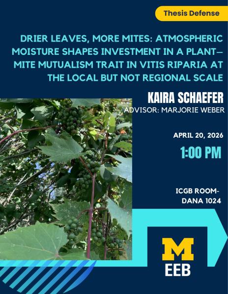 EEB Student Thesis Defense - Drier leaves, more mites: atmospheric moisture shapes investment in a plant–mite mutualism trait in Vitis riparia at the local but not regional scale