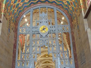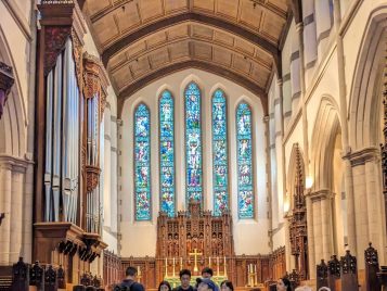 On Friday, July 13, international U-M graduate students in ELI’s Summer EAP program embarked on a daylong trip to Detroit to explore the city and learn about some of its vibrant cultural heritage. During their visit, they had the opportunity to explore Detroit’s African American heritage at the renowned Charles Wright Museum of African American History. The students were deeply moved by the museum's extensive exhibits and found the experience “meaningful” and “enriching.”Continuing their historical exploration, the students enjoyed the Historical Tour of the David Whitney mansion learning the stories about the founders of Detroit's most iconic former residence and about its lingering ghosts. They then visited the historic Cathedral Church of St. Paul, admiring its stained glass-work and the Gothic architectural elements and learning about its significance in the community over the years. They were even treated to a short and impressive organ concert played just for the group!Later in the afternoon, the students explored the bustling downtown area, including the iconic Guardian Building, and then hopped on the People Mover for the panoramic views of the city's famous landmarks, ending up with a photo op in front of the Spirit of Detroit monument. Students reported not only appreciating Detroit's rich history and cultural diversity but learning about the things they can further explore in the city on their own.