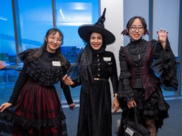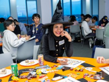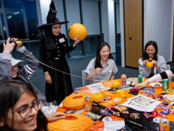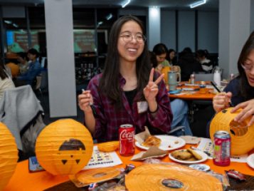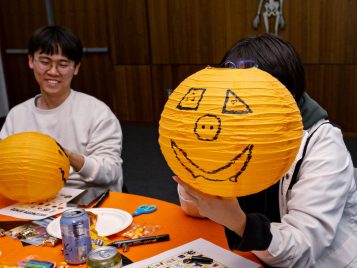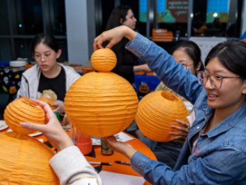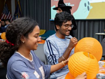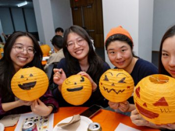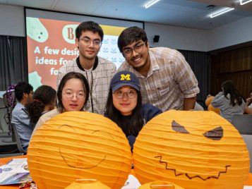 On Tuesday, October 22, ELI hosted a spooktacular Halloween event for U-M international students and scholars. Participants played Halloween-Themed Bingo while enjoying pizza, cookies, and candy and learned more about the traditions and symbols associated with this spooky holiday. A few even showed up in stylish goth costumes! Everyone then got creative and decorated paper jack-o-lanterns to bring some holiday spirit back home with them.