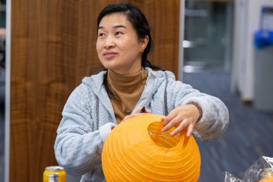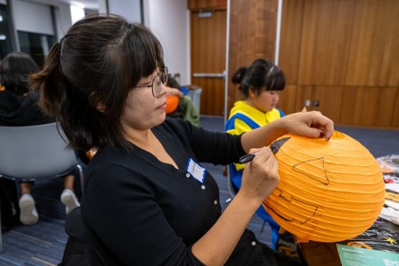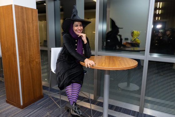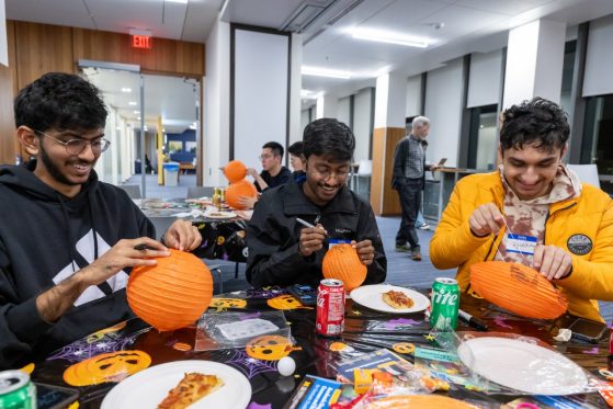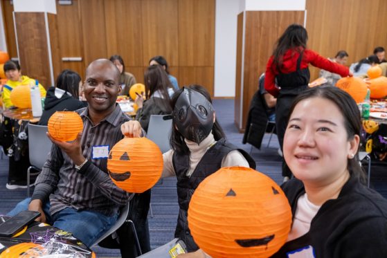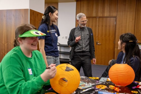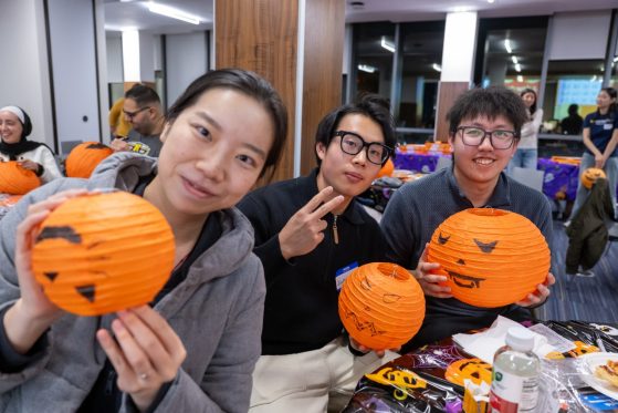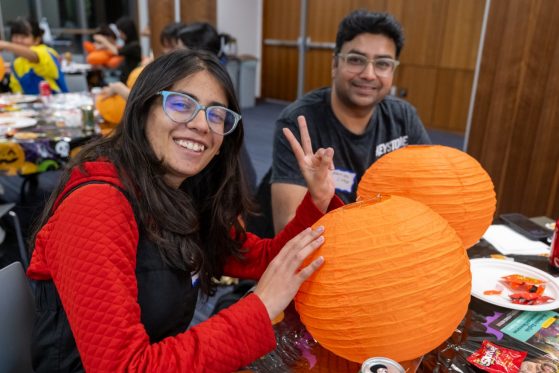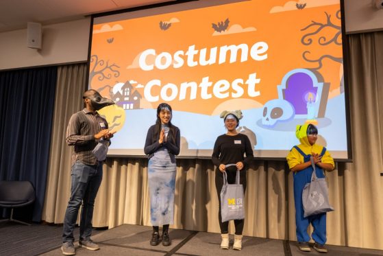 On Tuesday, October 28, nearly 60 U-M students and scholars gathered on the 10th floor of Weiser Hall to celebrate the holiday. Participants enjoyed pizza and candy while playing Halloween trivia and making paper jack-o-lanterns. This year’s event featured a costume contest, with the audience serving as judges. Three creative contestants took home ELI swag bags as prizes!