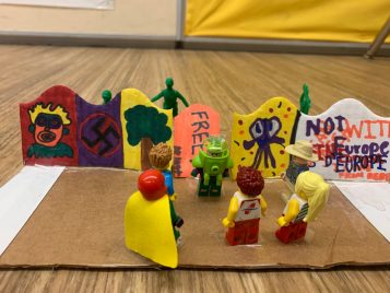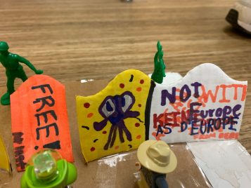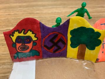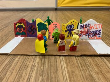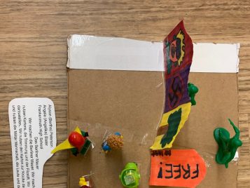 Hier habe ich einen Dresdner Plattenblock gemacht. Dieser Quiltblock tauchte erstmals in den 1920er Jahren in Deutschland auf, wurde aber in den 1930er Jahren sehr beliebt. Der Quilt stammt aus Dresden, Deutschland. Er ist sehr bunt und stellt eine Blume dar. Dieses Steppmuster soll durch die Verwendung von Stoffresten nachhaltig sein. Hier habe ich alte Jeans, die ich zerschnitten hatte, und Stoffreste für den Hintergrund verwendet.