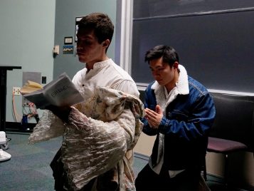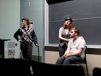The German 232 Intro to German Theater class gave a most wonderful performance of selected scenes from several classic plays on March 28, 2018. The scenes represented works by Goethe, Brecht, Fleißer, and other notable authors. Instructor Julie Gruber guides the overall direction, allowing room for lots of creativity and interpretation of the scenes from the students. The result is always fun and inspiring.