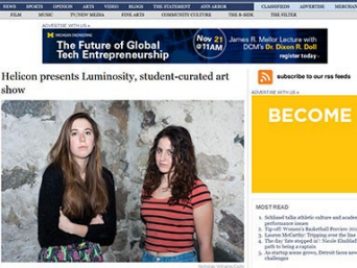 Helicon is a student organization dedicated to supporting the local visual arts community. Helicon runs a blog, curates student exhibitions, and edits Hel[icon], an arts publication that appears at the end of each school year. The group’s many activities include community service, museum visits, an arts-oriented spring break trip, and socials. Helicon welcomes students who want to participate in the arts scene at U of M and who seek experience in writing, photography, graphic design, arts journalism, and event planning. Contact Avery Nelson (averynel@umich.edu) to find out how to get involved, and like us on Facebook to learn about events.