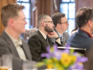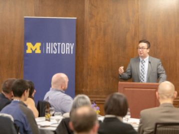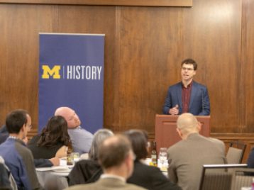 Sunlight streamed through the windows of the Michigan League Koessler Room on the evening of Friday, May 3, as nine students completing their doctoral studies gathered with friends, family, and faculty to celebrate.