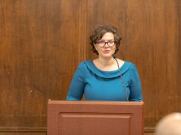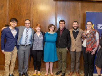 Director of Graduate Studies Brian Porter-Szucs served as emcee for the event, offering welcome remarks before honoring students who received prestigious awards for their dissertations. Sarah Mass and Joost Van Eynde were both recognized as recipients of the 2019 Arthur Fondiler Dissertation Prize, while Cyrus O'Brien was acknowledged for receiving the ProQuest Distinguished Dissertation Award.