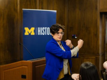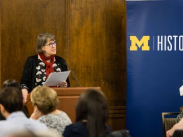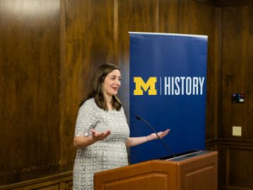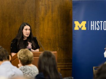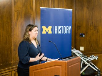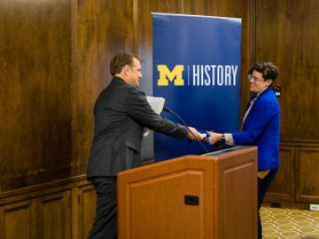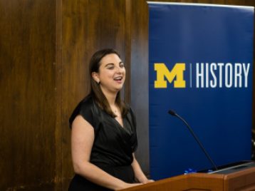 Department Chair Angela Dillard welcomed guests, and Director of Graduate Studies Joshua Cole served as emcee for the event. After giving opening remarks he awarded ToniAnn D. Treviño the 2023 Arthur Fondiler Dissertation Prize, and Hayley R. Bowman the 2023 Arthur Fondiler Dissertation Prize Honorable Mention.
