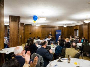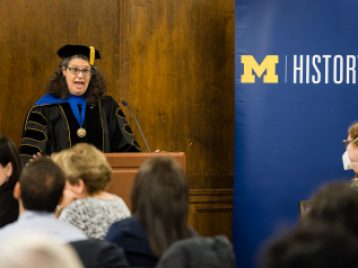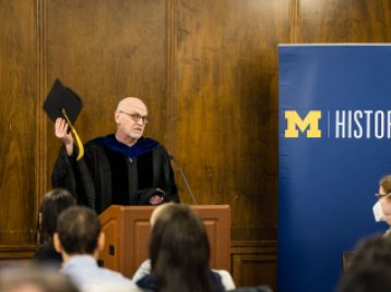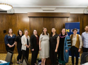 On the evening of Friday, April 28, nine students completing their doctoral studies gathered with friends, family, and faculty to celebrate in the Koessler Room of the Michigan League.