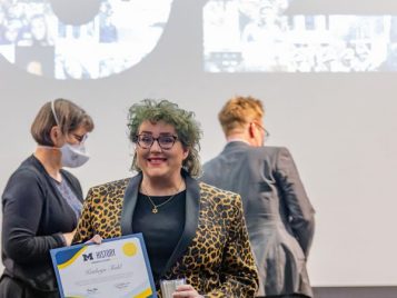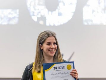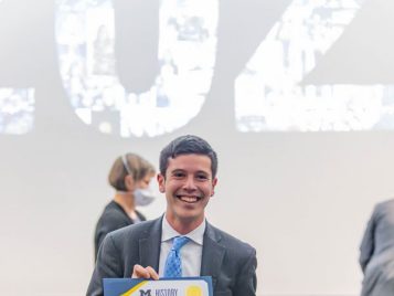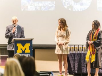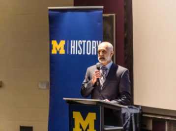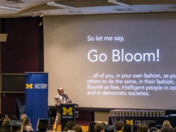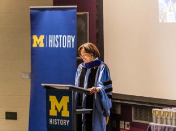 Director of Undergraduate Studies Perrin Selcer and Assistant Director of Undergraduate Studies Kate Wroblewski served as emcees, and Department Chair Angela Dillard delivered welcome remarks. Serena Bernal delivered a student address to the Class of 2022. Professor Howard Brick, who received his bachelor’s, master’s, and doctoral degrees from the university, delivered the ceremony's keynote, "History Between Past and Future."