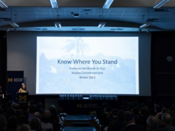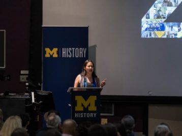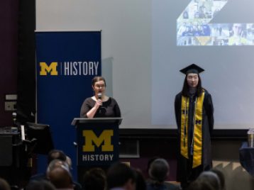 Director of Undergraduate Studies Perrin Selcer and Assistant Director of Undergraduate Studies Kate Wroblewski served as emcees, and Department Chair Angela Dillard delivered welcome remarks. Elizabeth Celia Yoon delivered a student address to the Class of 2023. Professor Deirdre de la Cruz, historian and cultural anthropologist of the Philippines, delivered the ceremony's keynote address, "Know Where You Stand."