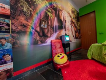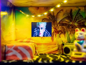 Snelling’s pop aesthetic incorporates prefab objects, bright colors, light, video, and sound. The work is disarming in its exuberance, reassuring us there is no such thing as a zombie under the bed, while at the same time, making room to process the very real and unsettling world in which we live.