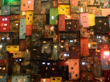Her signature piece "One Thousand Shacks" (included in this exhibition along with new work created during her her residency here) pushes up against the challenges of economic inequalities, racial biases, and imposed class divisions that often limit the options available to so many people. Concurrently, the installation embraces our everyday existence expressed through Snelling’s exuberant palette, bold graphics, video and neon.