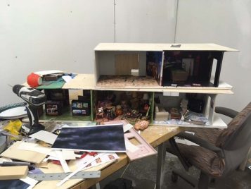 She refers to her three dimensional work as sculptural rather than diorama or model making because she isn’t particularly interested in the exact rendering of location, or the contextualization of place. Instead, she taps into the energy of community and its humanness—restless, frenetic, din, a choir, extending beyond the confines of walls.