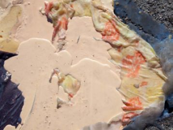 He returned to the original pot holes, filling them with pieces of clothing and mundane household objects imbedded in the resin casts. In the process these too became imprints, referencing the deeply invested communities and relationships that offer sustenance in the city of Detroit despite many challenges and deficits.