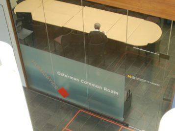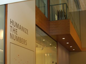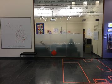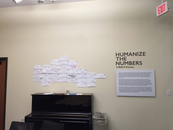 The Common Room pop-ups (short running exhibitions in a non-traditional gallery space) are a relatively new endeavor here at the Institute for the Humanities. When I came on as institute staff in the fall of 2014, Amanda Krugliak, our arts curator, was just delving into programming and exhibitions in this space for the first time. This year, we worked with a variety of artists to make the Year of Conversions come to life in the Common Room. Our collaboration with the campus-wide initiative Humanize the Numbers was, for me, one of the most dynamic parts of the 2016-2017 academic year.