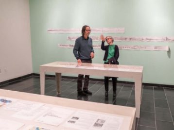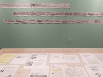 The exhibition consists of three long, scrolling graphite landscape drawings of the sites as they are today. One is the Modern Landfill and Tomato Hothouses site in Lewiston, NY—it, too, is located on the former LOOW site, near the Niagara Falls Storage Site. The second is a stretch of Niagara Falls Boulevard that includes the local Best Western, Rapids Bowling, and the Greater Niagara Building Center (a wholesale supplier for local builders and contractors), all of which have radioactive parking lots. The third drawing depicts the Willow Run Airport and Wayne Disposal in Belleville, Michigan, a former farm camp for boys turned into the B-24 bomber plant during WWII and now a hazardous waste landfill and airport. All three drawings will occupy vitrines that also contain an assortment of hand-copied documents relating to the specific context and history of the locations in question. On the walls, there will be two large rubbings: one from a radioactive parking lot on Niagara Falls Boulevard, the other from the place where the radioactive spoils pile was kept before being shipped to Michigan.