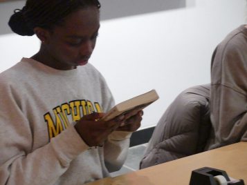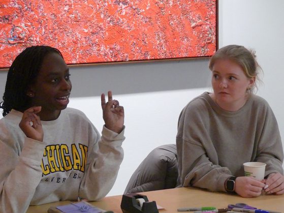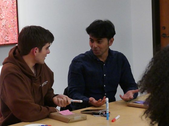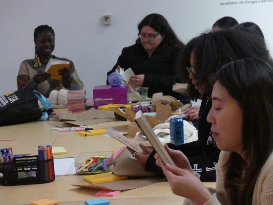 On Thursday, February 12, 2026, the Institute for the Humanities Public Humanities Interns invited students of the university to our Blind Date Book Swap, a cozy evening devoted to sharing the joy of reading and discovering new stories. Guests arrived and began wrapping the books they brought while enjoying sweet treats from Luca Pastry.