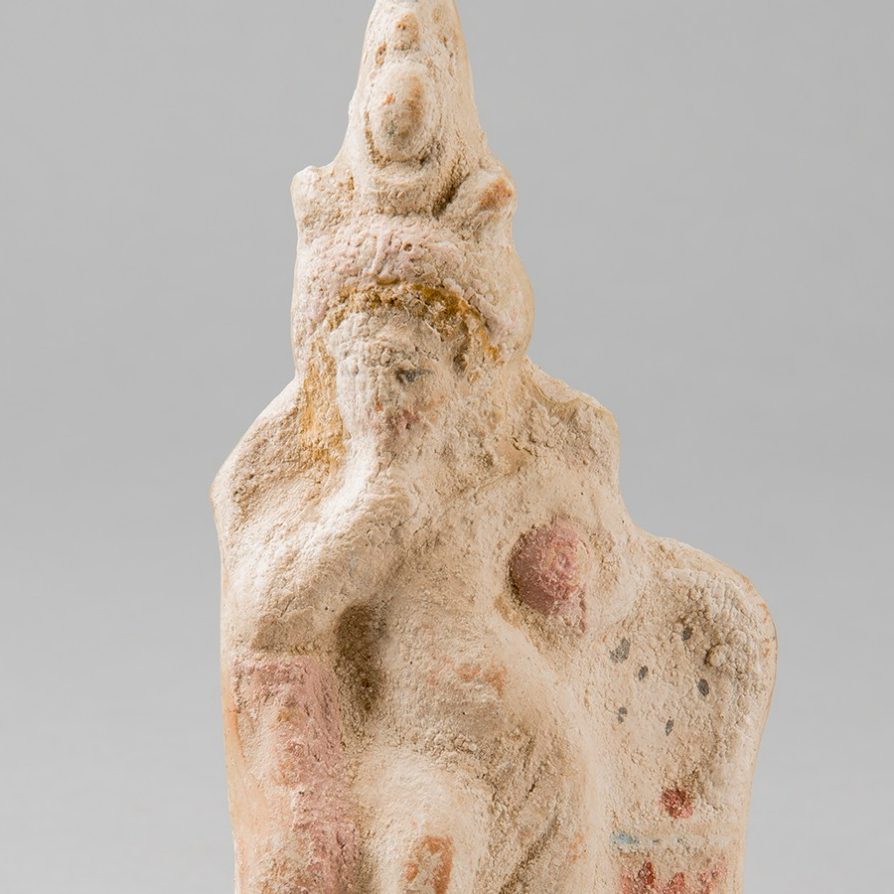 All three figurines featured in this Kelsey in Focus exhibition come from houses at Karanis, Egypt: a dog, the god Harpocrates, and the goddess Isis-Aphrodite. Figurines like these could have had many uses, including as religious objects, knickknacks, or toys.