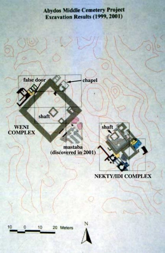 The 2001 season of the Abydos Middle Cemetery Project had very limited goals, given its brevity (two months): to excavate and record the grave chambers of Weni the Elder and the overseer of priests Nekhty, whose door lintels we exposed in 1999; and to investigate an area south of Weni’s mastaba that we thought might include debris from his burial chamber. The season’s results also yielded, however, a surprising intersection of the two main issues raised above: the archaeology of events and the archaeology of people.