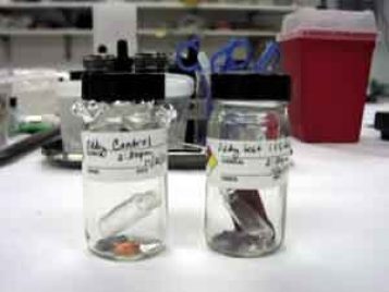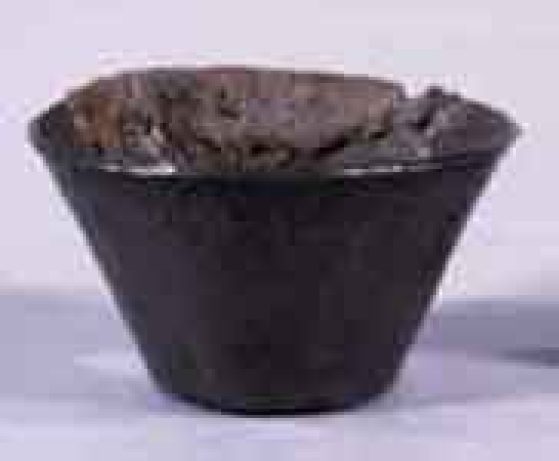 For instance, some of the bronze figurines in the Kelsey’s current special exhibition, “Individual and Society in Ancient Egypt,” had visible corrosion problems. These bronzes were tested to determine whether their corrosion products contained chloride ions, which would create the potential for further corrosion to occur in a humid environment. If the corrosion was found to contain chloride, the bronzes were cleaned to remove this corrosion and treated with a corrosion inhibitor. A small silver cup (KM 3727) in the exhibition was cleaned to remove a thick layer of silver sulfide tarnish, and once the silver surface was polished to an acceptable level, it was coated with an acrylic resin to help protect the surface from further tarnish during exhibition.