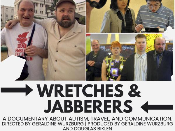 Wretches and Jabberers, a documentary about autism, travel, and communication, directed by Geraldine Wurzburg and produced by Geraldine Wurzburg and Douglas Biklen, will be shown in East Hall 4448, from 6-8 PM on October 29, 2025.